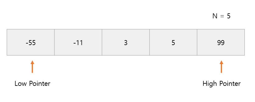 두 포인터를 사용할 것인데, 처음 위치를 양 끝에 잡습니다.
