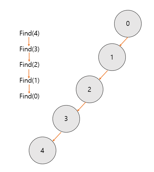 위 그림과 같이 find(4)의 네 번의 재귀가 필요합니다.