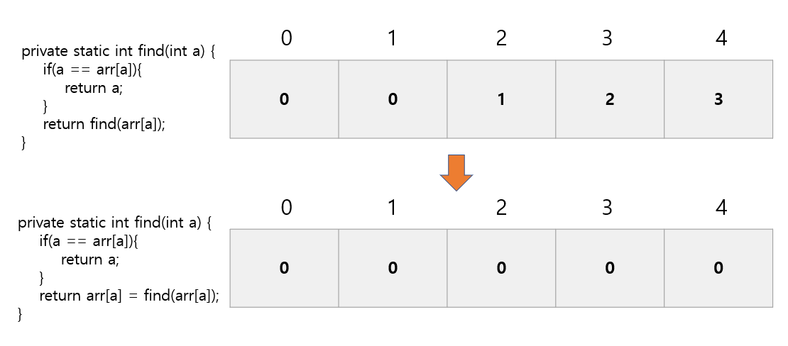 return arr[a] = find(arr[a]);