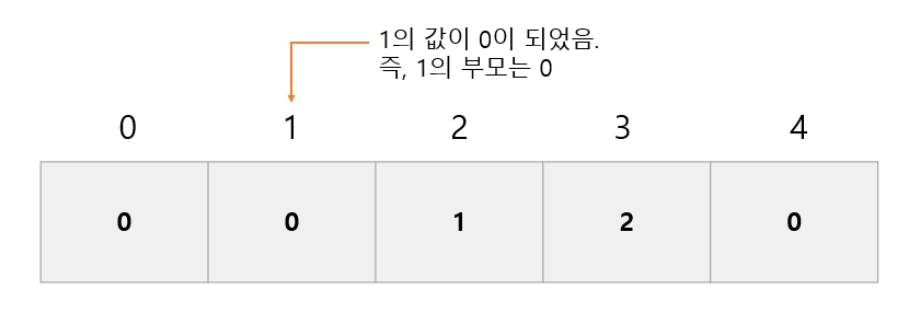 각 인덱스의 값을 자기 자신의 값으로 바꿔 자기자신이 곧 자기의 부모 노드가 되도록 합니다.