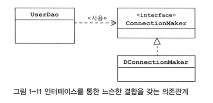 - UserDao는 DConnectionMaker 클래스에 의존하지 않음