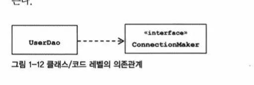- UserDao는 DConnectionMaker 클래스에 의존하지 않음