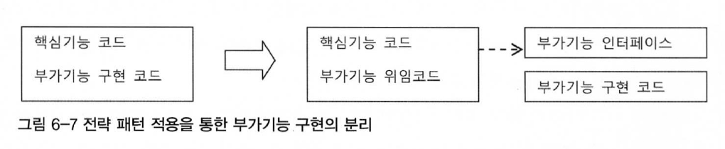 - 전략 패턴 적용을 통한 부가기능 구현의 분리