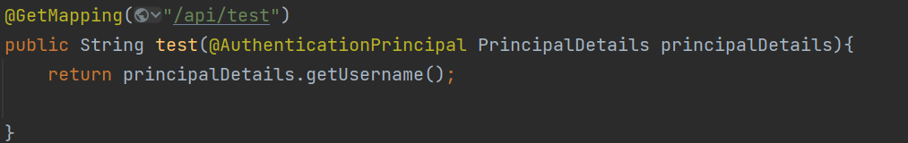 위의 코드를 실행하는데 PrincipalDetails가 null 값이 들어온다.