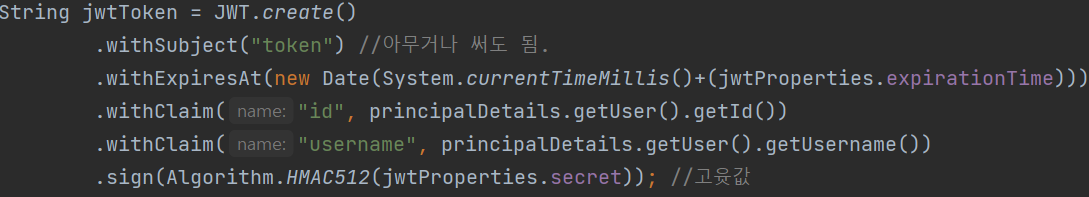 자세히 보면 successfulAuthentication()의 withClaim() 부분과 doFilterInternal()의 getClaim()의 부분이 다르다.