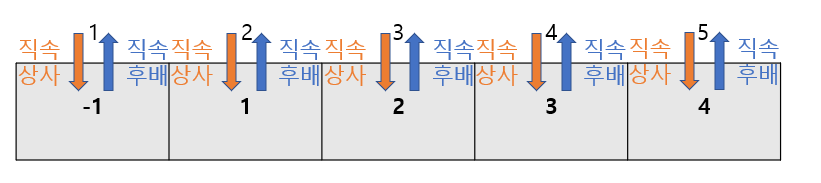 인덱스 2번의 값은 1입니다. 2번의 직속 상사는 1번이자, 1번의 직속 후배는 2번으로 해석할 수 있습니다.