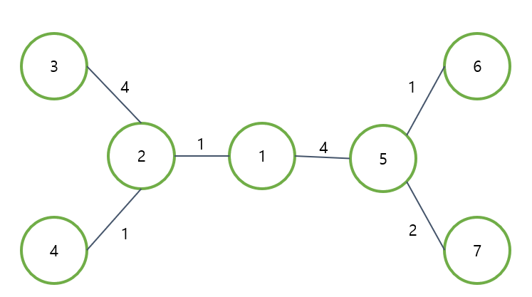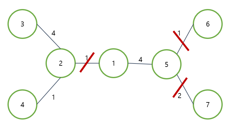 - 1번 노드와 모든 리프노드가 연결될 수 없게 간선을 짜른다. 단, 간선을 짜를 때의 가중치를 최소로 한다.
