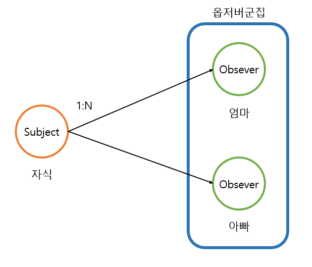 - Subject를 구현하는 Child에 등록하고 싶은 Observer 구현체(엄마, 아빠)를 등록한다.