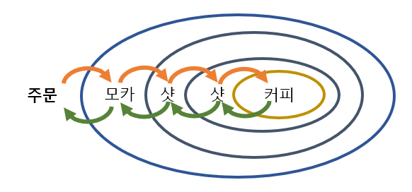 - 데코레이터(샷, 모카)의 생성자를 통해 피데코레이터(커피)를 전달한다.
