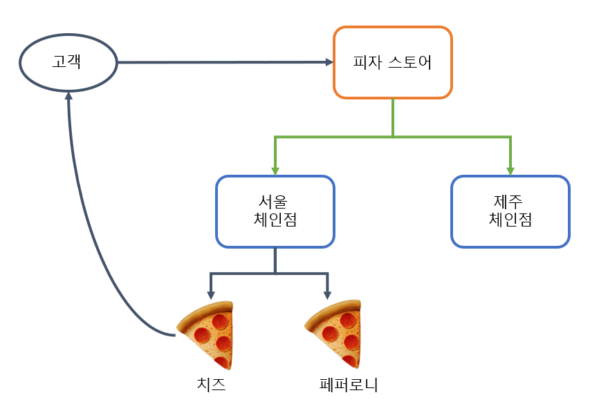 - 서울과 제주 피자 체인점에서 피자를 주문한다.