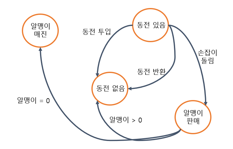 - 즉, 내부 상태가 바뀜에 따라 행동이 달라진다.