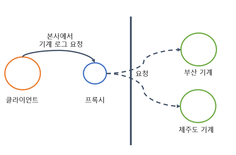 - 클라이언트가 원격에 있는 부산과 제주도 기계의 로그를 요청한다.