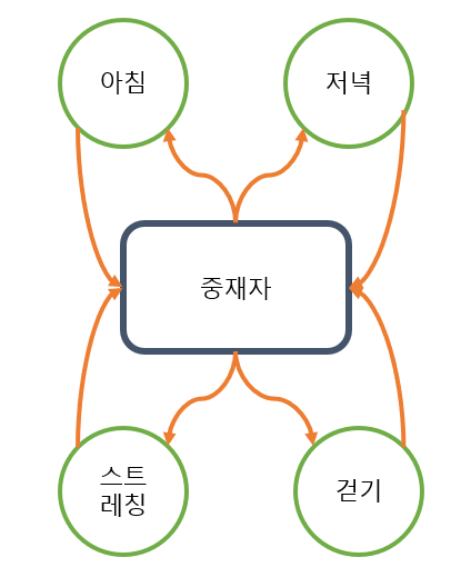 - 중재자를 통해 아침에는 스트레칭하고, 저녁에는 걷는다는 것을 알린다.