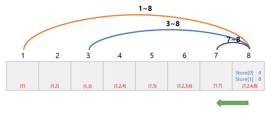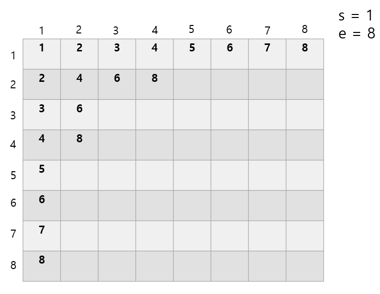 s=1, e=8 일 때의 그림을 보겠습니다