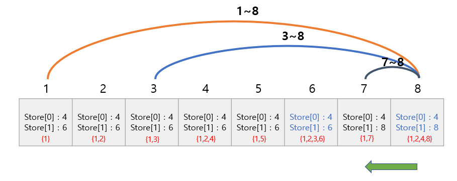 starts = {1, 3, 7}는 위 저장된 store 배열에서 값을 가져오면 됩니다.
