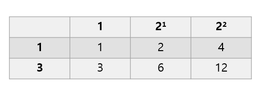 즉, 다음 표와 같습니다.