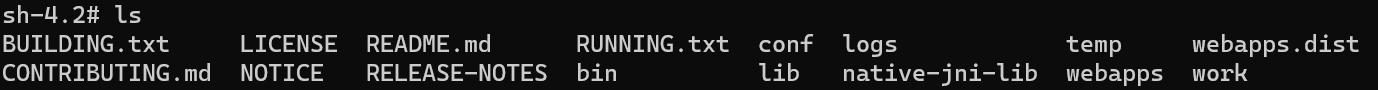 "ls" 명령어를 사용하면 톰캣 내부 파일을 볼 수 있습니다.