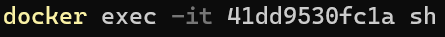 "docker exec -t {컨테이너 아이디} sh"입니다.