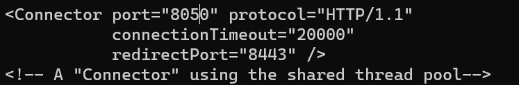 키보드 a -> 8080을 8050으로 변경 -> esc -> :wq 순서대로 하여, 8080을 8050으로 변경합니다.