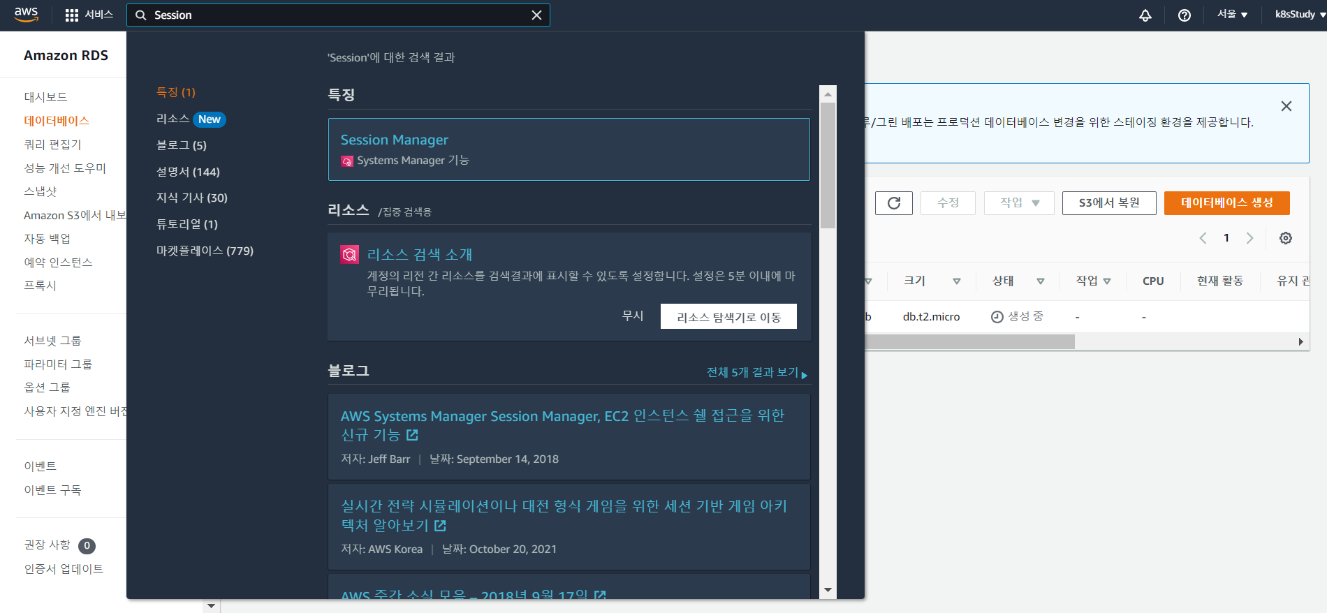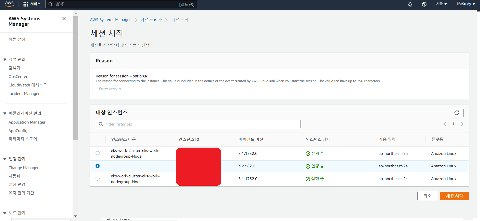 세션 관리자의 콘솔로 돌아가서 아래의 작업을 한다.