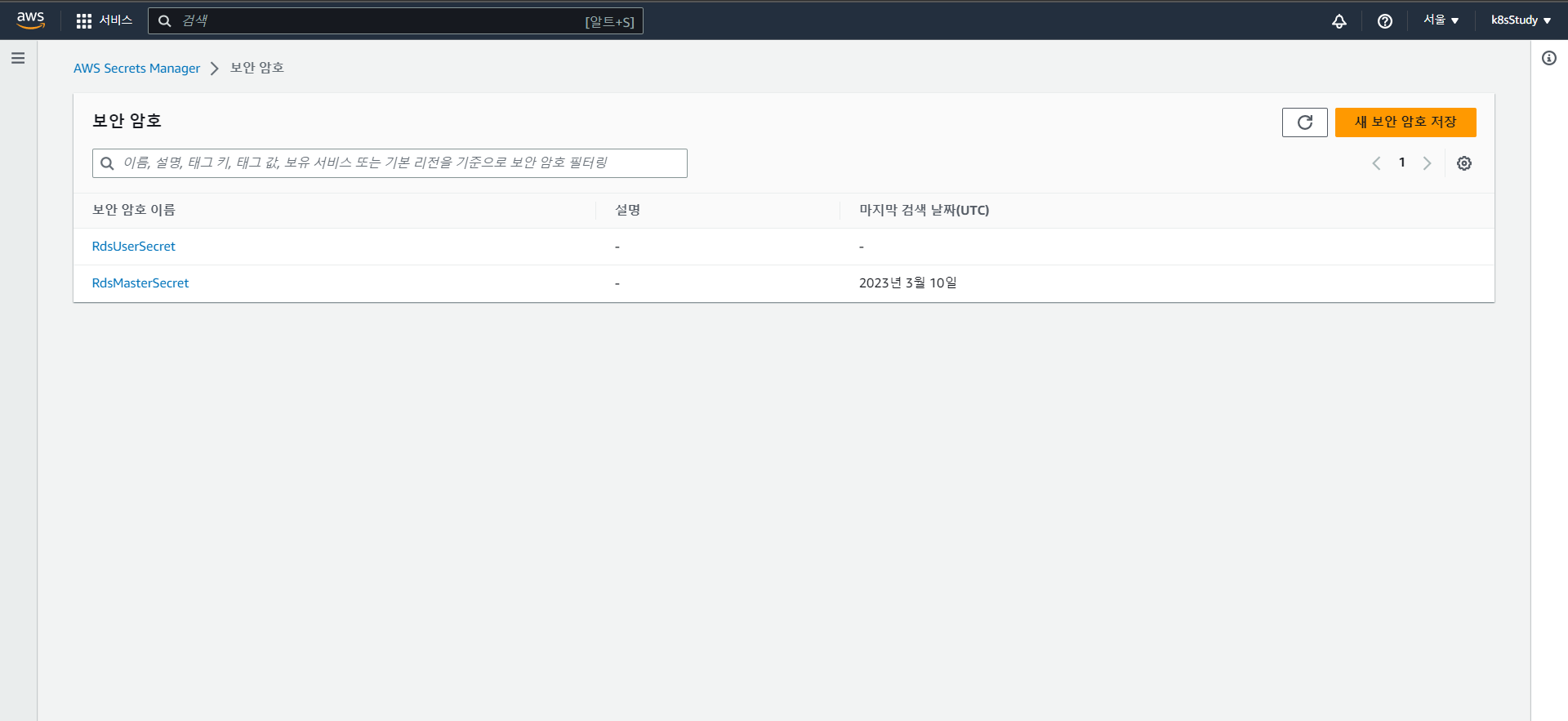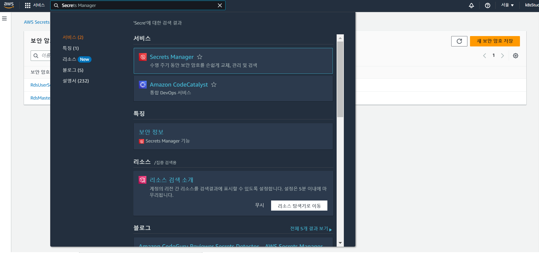 확인 절차는 Secrets Manager → RdsUserSecret → 보안 암호 값 검색 → password 이다.
