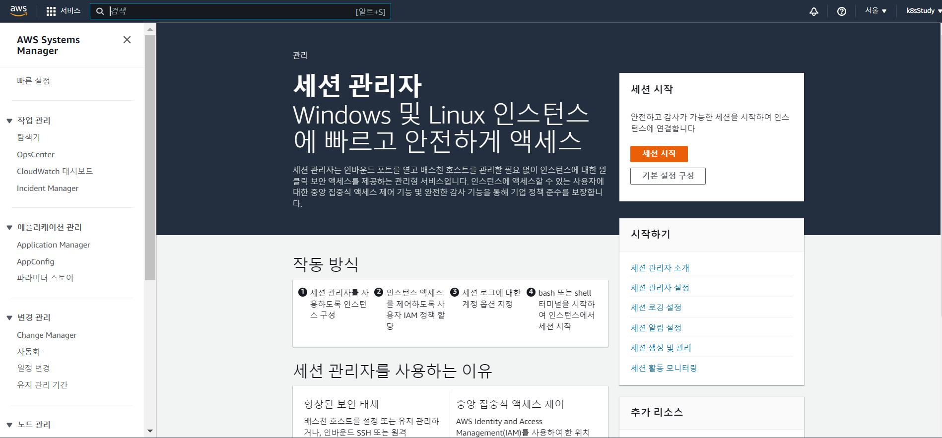 세션 관리자는 EC2 인스턴스 콘솔로 접속할 수 있는 서비스이며, AWS Systems Manager 기능의 하나로 제공된다.