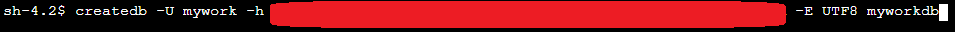 createdb -U mywork -h <RDS 엔드포인트 주소> -E UTF8 myworkdb