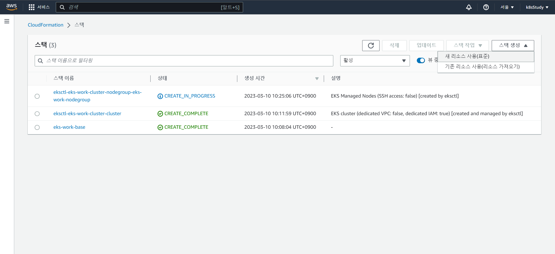 스크롤을 내려 EksWorkVPC에서 이전에 생성한 eks-work-VPC를 선택한다.