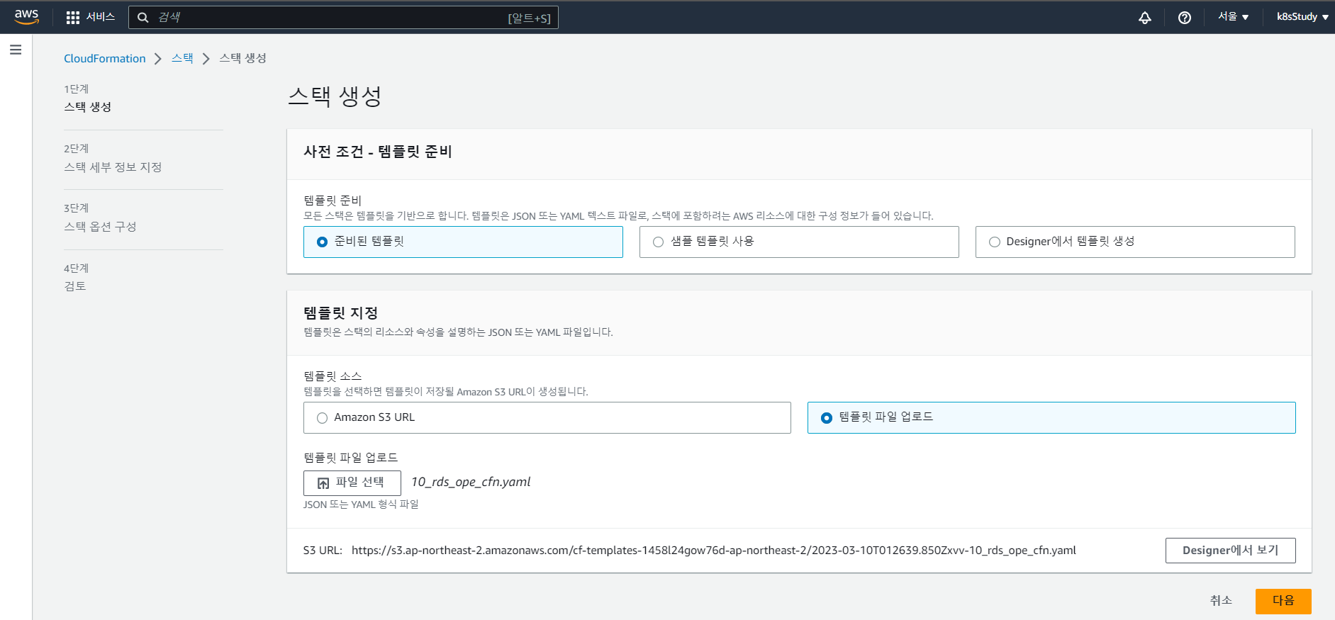 템플릿에 10_rds_ope_cfn.yaml을 올린다.