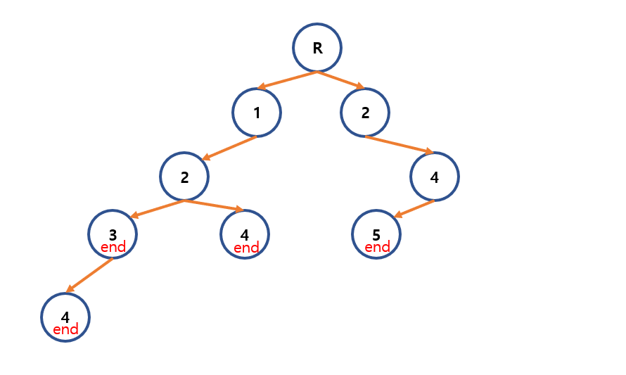 문자열 ["123", "124", "245", "1234"]를 트라이로 구현하면 다음 그림과 같습니다.