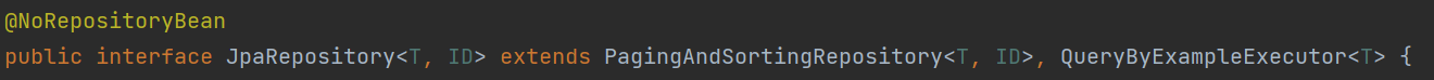 확인해 보면 @NoRepositoryBean이 설정되어 있어 빈으로 등록하지 않는다는 것을 알 수 있습니다.