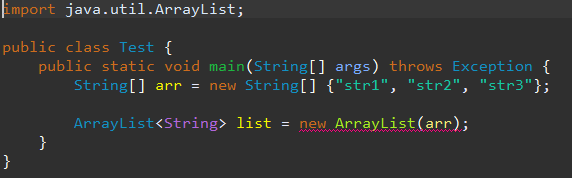 이와 똑같이 배열을 만들어 우리가 잘 아는 java.util.ArrayList 생성자에 넣어보겠습니다.