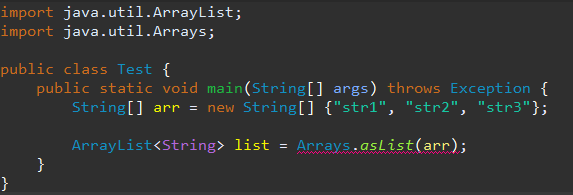 ArrayList<String> list = (ArrayList<String>) Arrays.asList(arr);