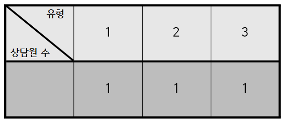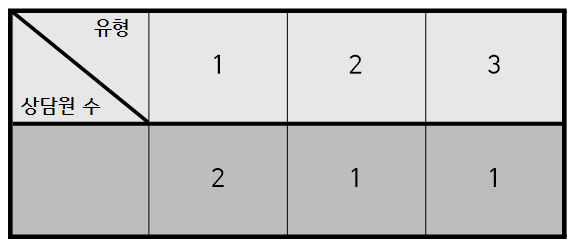 문제 조건에 의해 모든 유형에는 상담원이 한 명씩은 배치되어야 합니다.