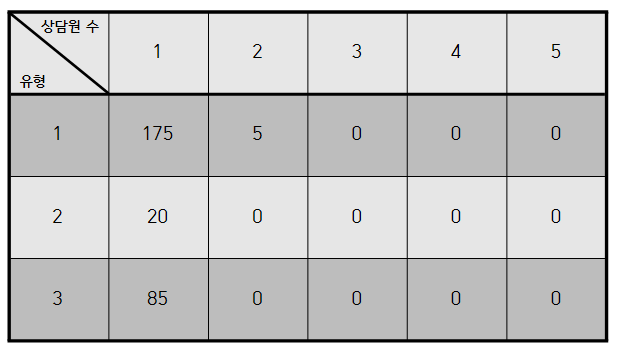 2번 유형에 상담원이 두 명이면 0분의 대기시간이 걸립니다.