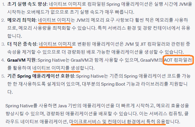 우선, Chat GPT에 Spring Native에 대해 물어 보니 아래와 같은 답변을 받았습니다.