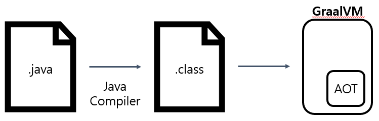 AOT는 .class 파일을 Native Binary로 다시 컴파일해서 실행합니다.