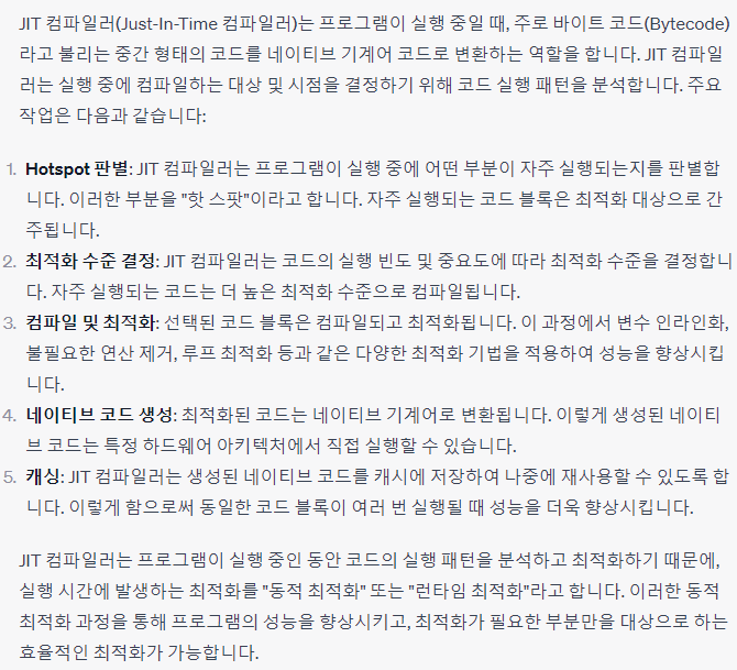 JIT 컴파일러가 러닝 타임중에 프로그램을 최적화 합니다.