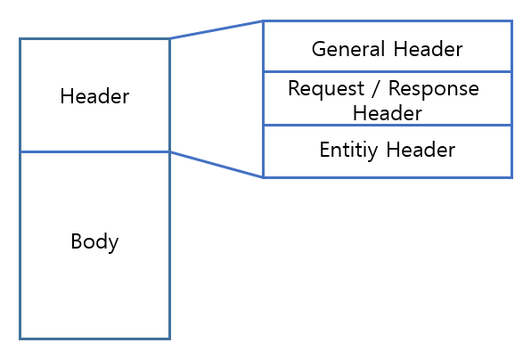 HTTP 1.1 버전의 경우 아래와 같이 세 가지 헤더로 구분할 수 있습니다.