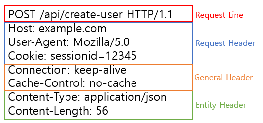 HTTP 요청(request)에 포함되는 세 가지 Header는 아래와 같습니다.