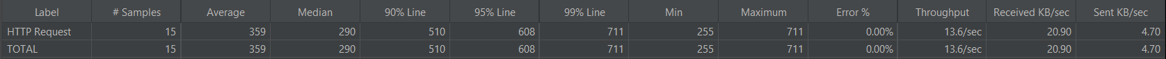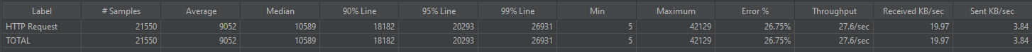 1000명의 사용자(Thread)가 각 10번(Loop)씩 1초(Ramp-up)동안 요청을 보내는 경우 아래와 같았습니다.