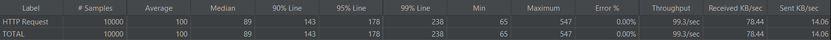 단순 DB 조회 요청을 1000명의 사용자(Thread)가 각 10번(Loop)씩 100초(Ramp-up)동안 요청 보내는 경우를 테스트해 봤습니다.