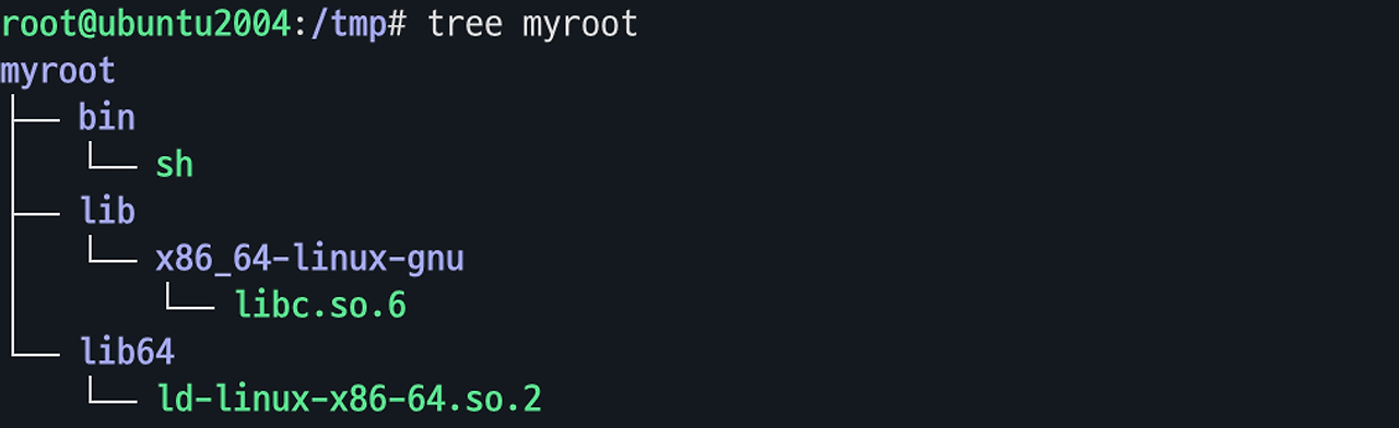 cp /lib64/ld-linux-x86-64.so.2 /tmp/myroot/lib64/;