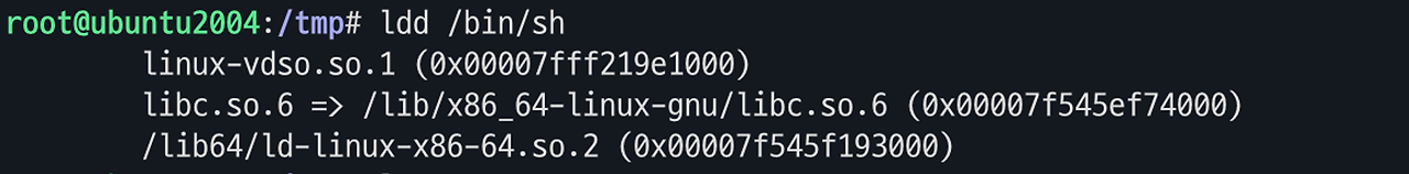 또, sh 명령어가 사용하는 의존성 라이브러리는 ldd를 통해 찾을 수 있습니다.