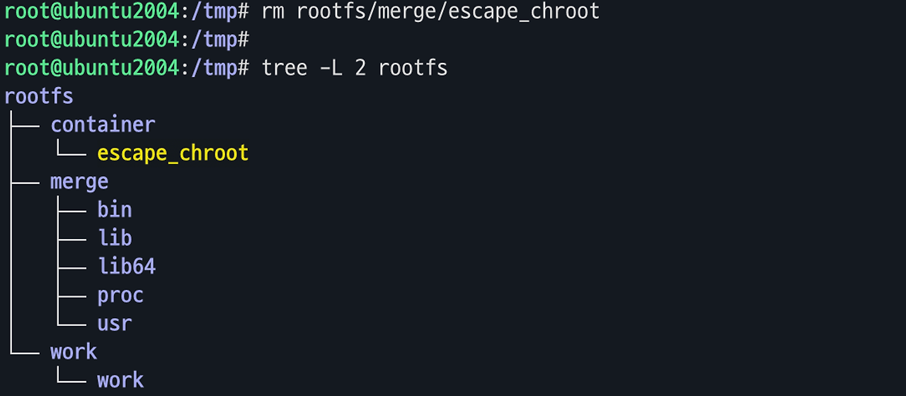escape_chroot를 삭제하면 변경사항이 container에 저장됩니다.