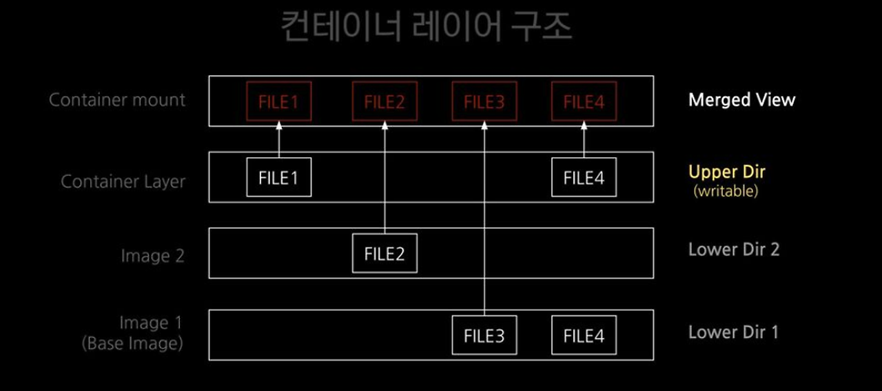 - container : Upper Dir에 해당하면서 변경사항이 존재합니다.