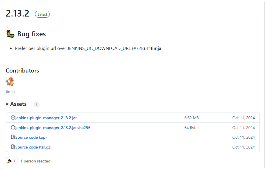 Jenkins Plugin Manager CLI는 https://github.com/jenkinsci/plugin-installation-manager-tool/releases 에서 다운받을 수 있다.