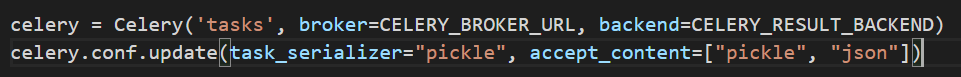 Ubuntu 운영체제에서는 task_serializer=”pickle”을 제거하면 된다.
