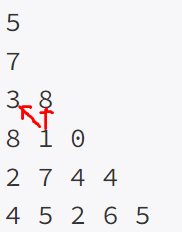 첫째 줄에 삼각형의 크기 n(1 ≤ n ≤ 500)이 주어지고, 둘째 줄부터 n+1번째 줄까지 정수 삼각형이 주어진다.
